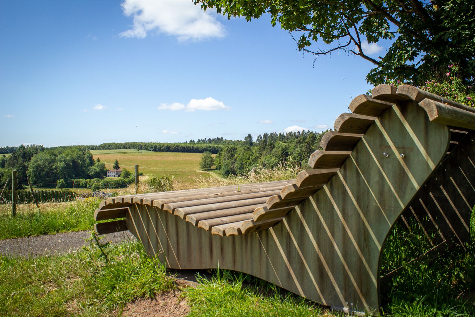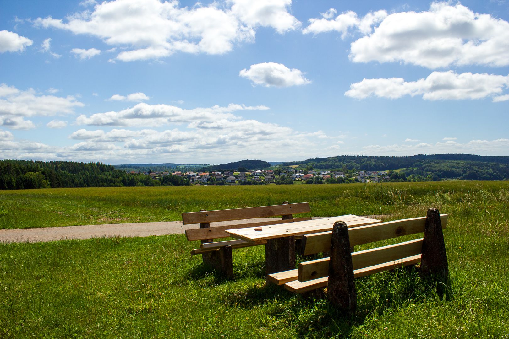 Eine Liegebank mit einem schönen Ausblick auf Neidenbach lädt zur Rast ein. An dem höchsten Punkt der Tour gibt es eine schöne Rastmöglichkeit mit Tisch und Bänken, von der man einen tollen Panoramablick auf Neidenbach hat.