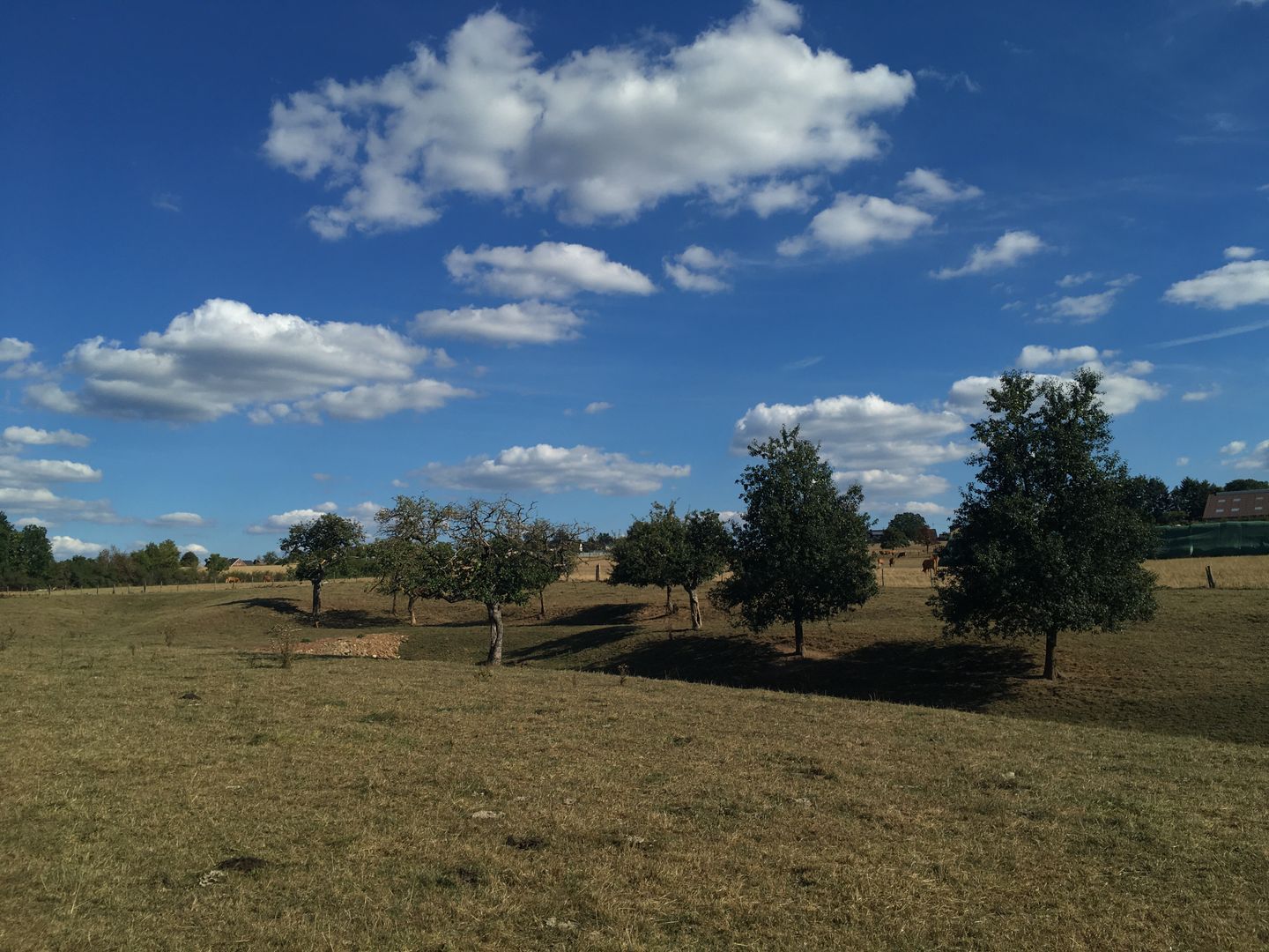 Zu Beginn lassen Sie den Blick über die Felder und Wiesen schweifen und je nach Jahreszeit erleben Sie ein Farbenspiel der Obstbäume am Wegesrand.