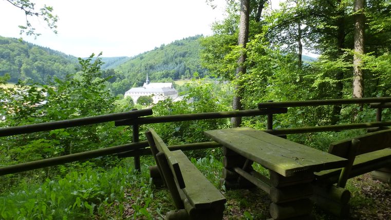 Im Folgenden bieten wir eine Alternative an: Entweder über das Katzbachtal oder auf direktem Weg nach St.Johann und ins Kylltal. Hier wandern wir mal in größerem Abstand zur Kyll, mal nahe am Fluss, ehe wir kurz vor dem Ziel auf einem Balkonpfad herrliche Blicke auf Sankt Thomas und dessen Kloster erhalten. Interessierte sollten nicht versäumen, nach der Wanderung die eindrucksvolle Klosterkirche von Sankt Thomas zu besichtigen; sie liegt nur wenige Schritte vom Bahnhof entfernt.