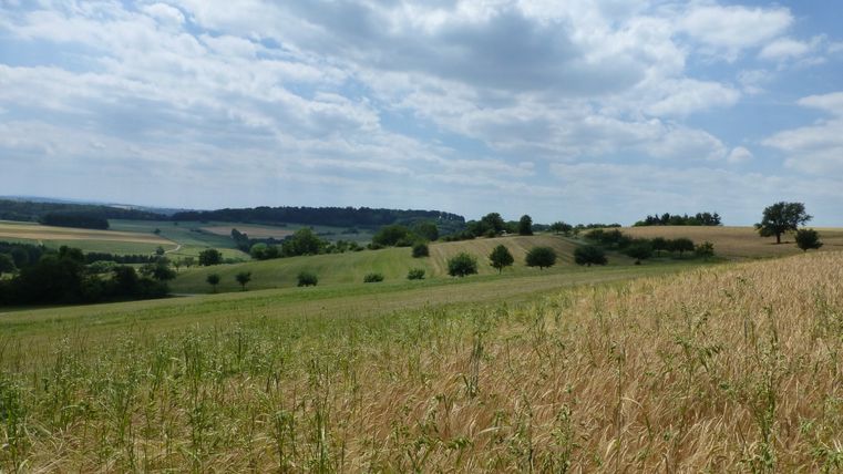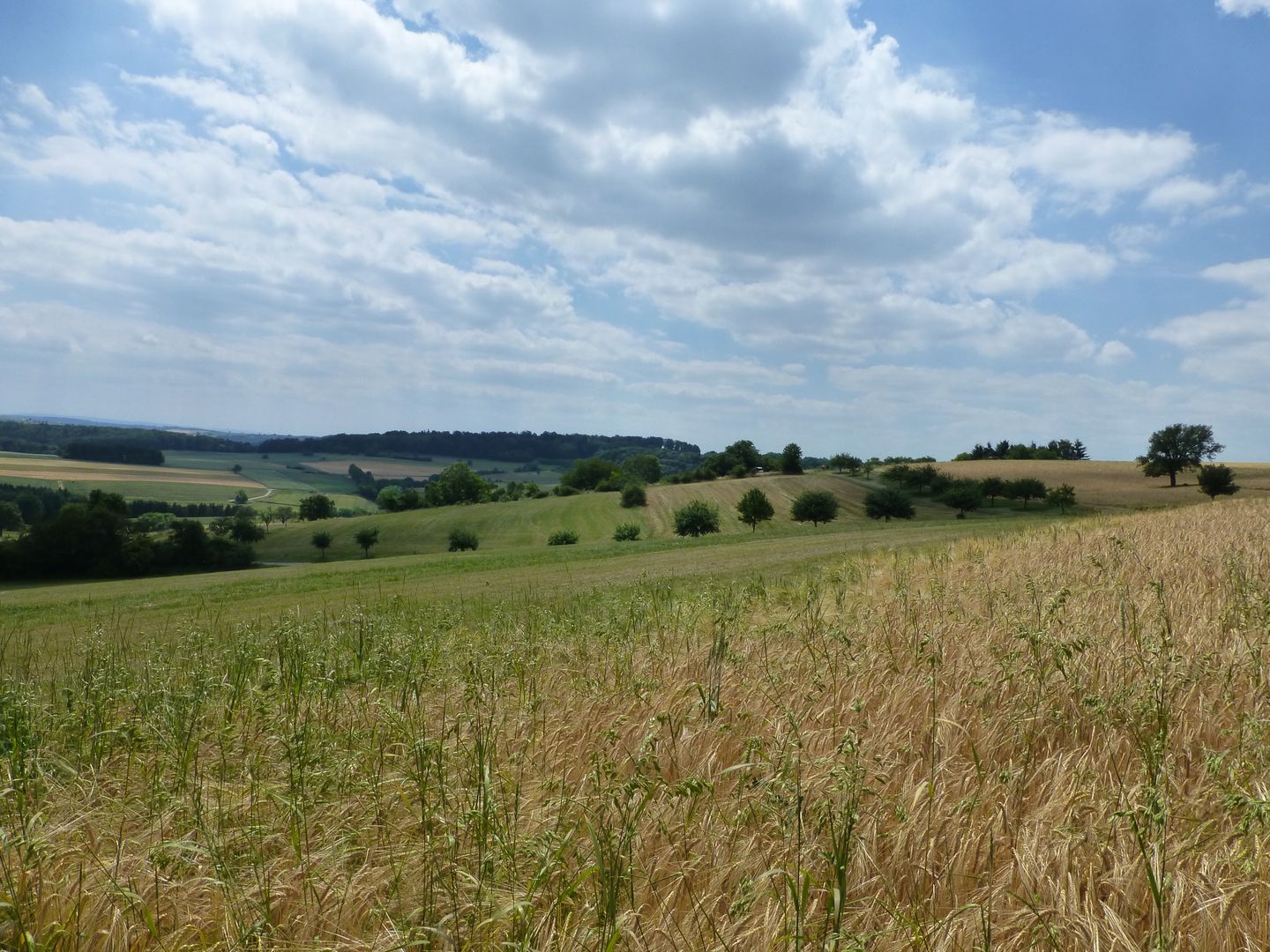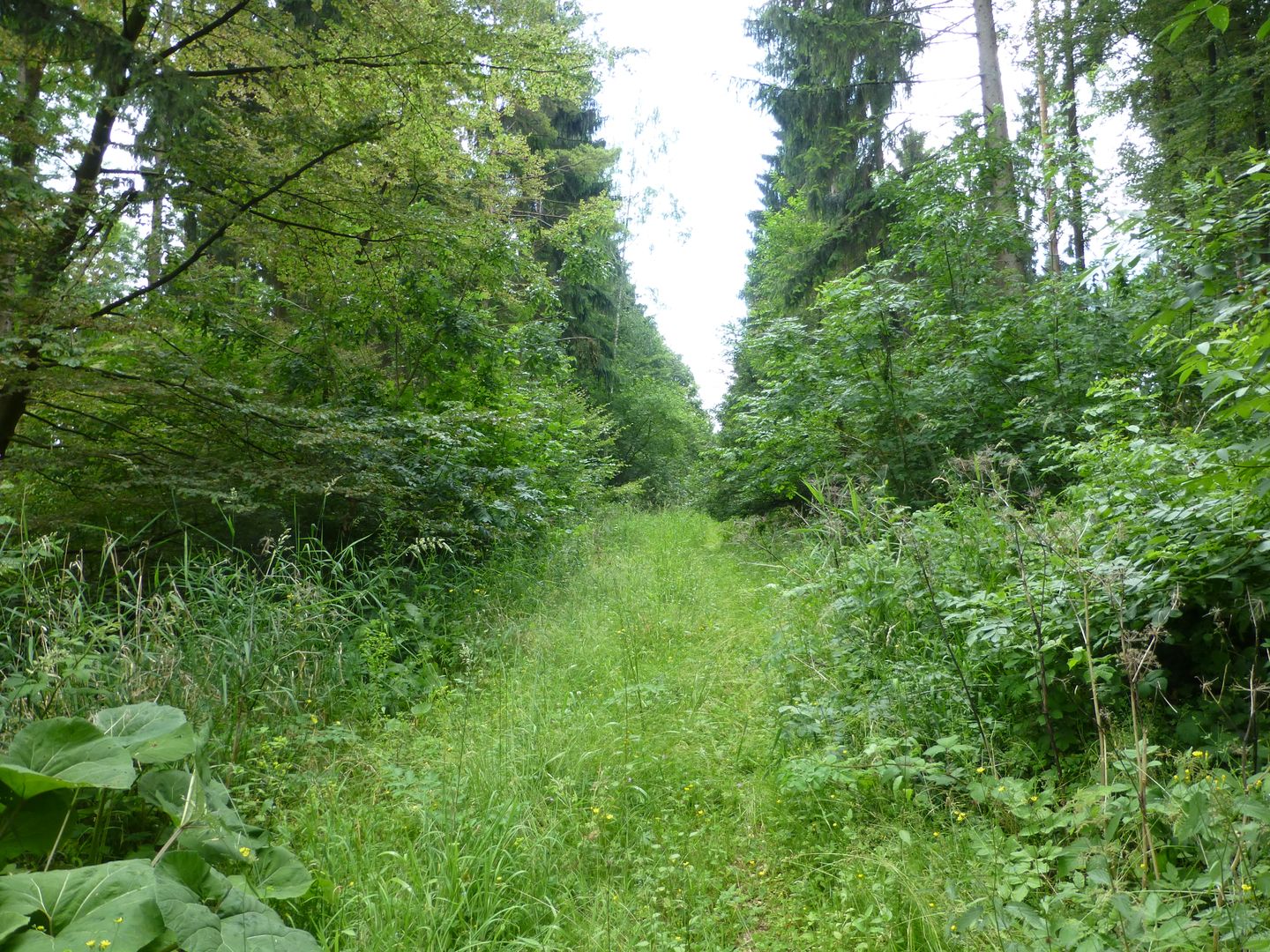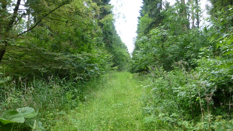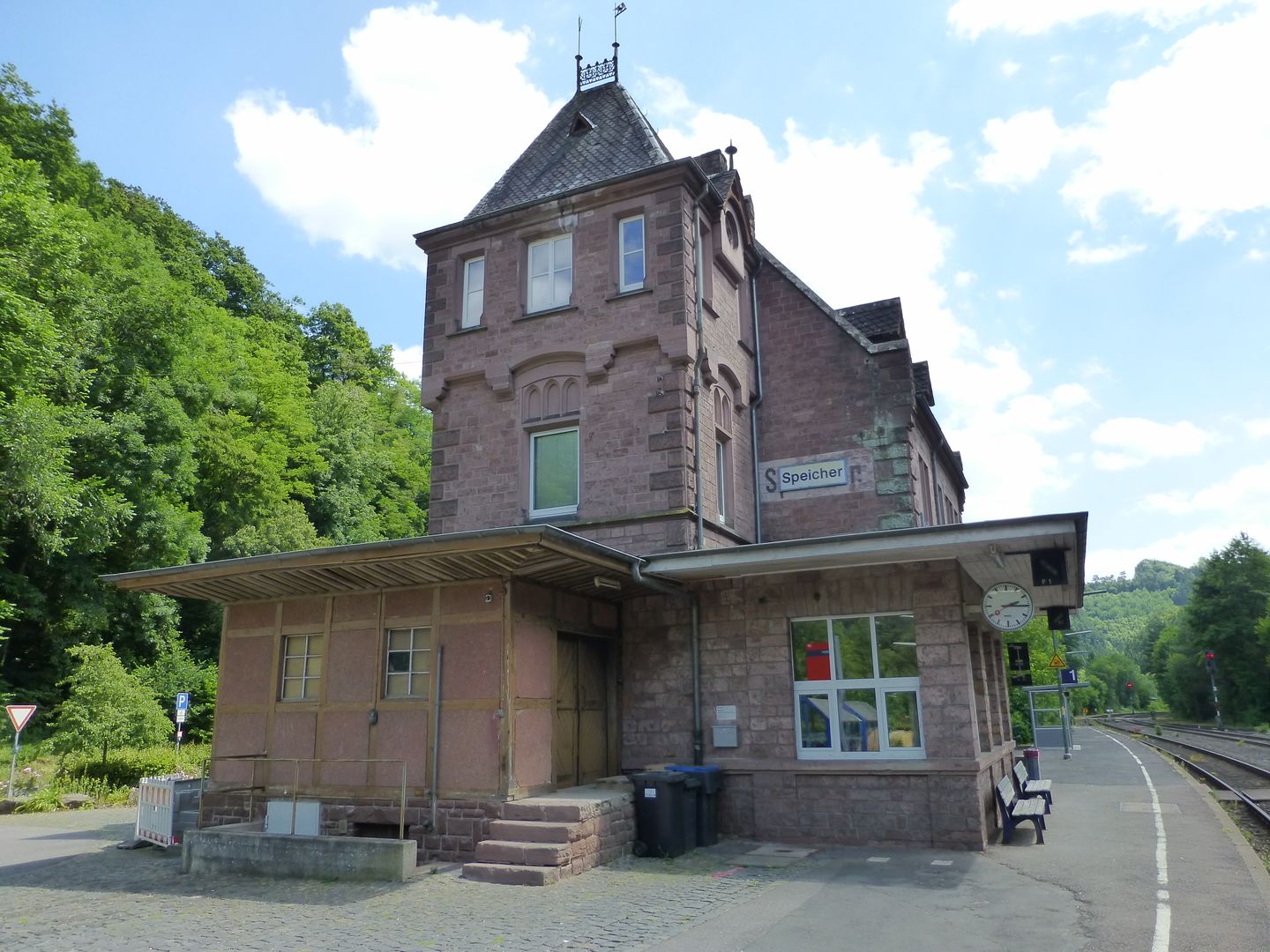 Auch unsere Tour führt durch ein weitgehend menschenleeres Gebiet. Anfangs wandern wir noch kurz parallel zur Kyll mit schönen Talblicken, dann geht es längere Zeit in westlicher Richtung durch Wald, ein gutes Stück davon gemeinsam mit dem Josef-Schramm-Weg des Eifelvereins. Nachdem wir uns nach Süden gewandt haben, kommen wir bald ins Freie und durchwandern bei weiter Sicht – auch Speicher ist in der Ferne schon zu erkennen – die Wiesenlandschaft oberhalb von Röhl. Schließlich durchqueren wir dieses Dorf und steigen dahinter kurz aufwärts, immer noch durch offenes Gelände; dann, nach Überquerung der L 39, tauchen wir bald wieder in den Wald ein und gehen den eng eingeschnittenen Johannesgraben abwärts, bis wir die Kyll erreichen. Zuletzt auf Asphalt zum Bahnhof, der so verträumt und einsam an der Kyll liegt, dass man sich gar nicht vorstellen kann, wie nahe man dem belebten Ortskern von Speicher ist.