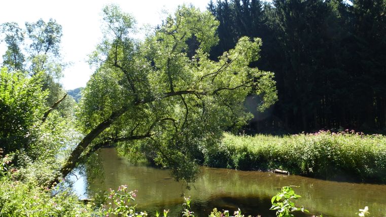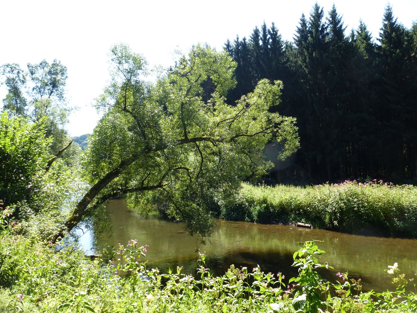 Ehe wir dieses Ziel ansteuern, schlagen wir wieder einen weiten Bogen, diesmal westlich der Eifelbahn. Wie schon die 18. Etappe bezieht auch diese ihren besonderen Reiz von wechselnden Uferwegen. Wir starten in Sankt Thomas an Teichen und wandern längere Zeit den Heilbach aufwärts; später durch ein früheres Abraumgebiet, das sich die Natur zurückerobert hat, bis vor das Dorf Neidenbach. Wenn wir den Neidenbach erreicht haben, geht es ca. 3,5 km durch dessen Tal abwärts, dann nach einem Schlenker in ein Seitental bis vor das Dorf Malbergweich, das wir in großem Bogen umrunden. Anschließend queren wir zum pittoresken Talbachgraben und kommen durch diesen hinunter zur Kyll. Hier begrüßen uns herrliche Auenlandschaften, an denen wir uns – evtl. mit einem Abstecher zum Schloss Malberg – bis Kyllburg erfreuen können.