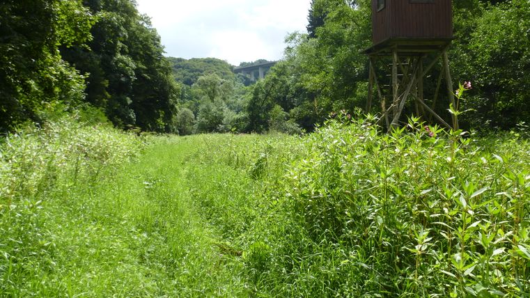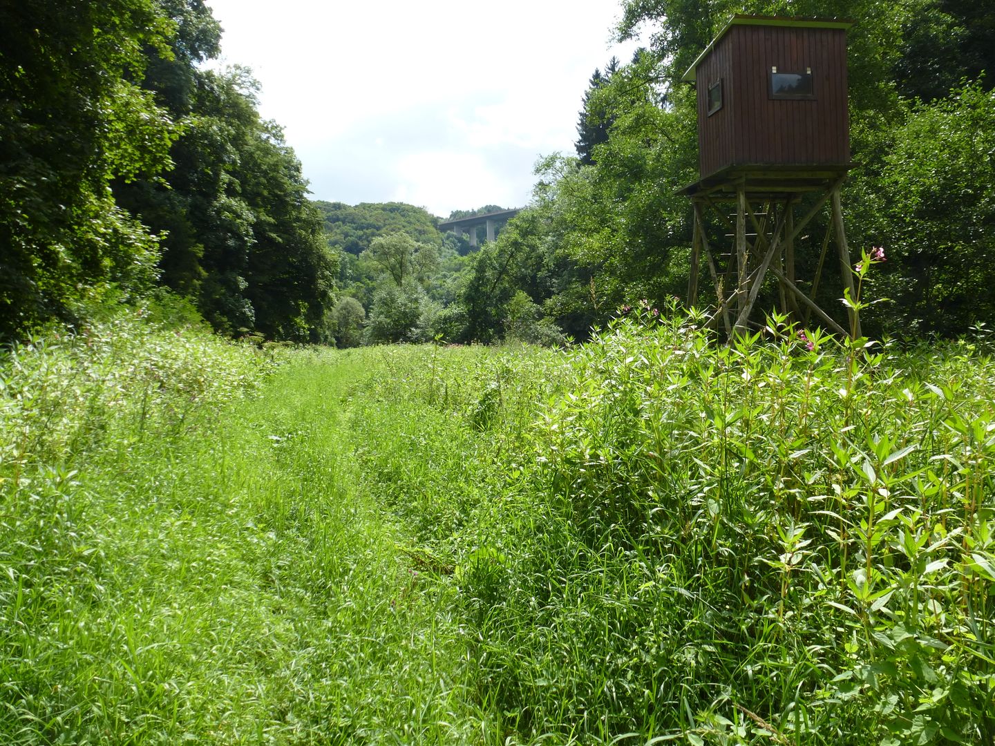 Die spektakulärsten Passagen dieser Etappe sind wohl diejenigen, in denen wir entlang des Flusses wandern, stellenweise auf naturnahen, kaum erkennbaren Pfaden und immer in völliger Einsamkeit. Weitere Höhepunkte sind die Panoramen auf dem Taubenberg und die offenen Landschaften um Otrang und bis kurz vor Erdorf. Nicht zuletzt bildet die imposante und doch auch elegante Kylltalbrücke, die wir aus verschiedenen Perspektiven zu Gesicht bekommen und in der Mitte der Tour sogar unterqueren, einen reizvollen Kontrast zu der einsamen Wanderung.