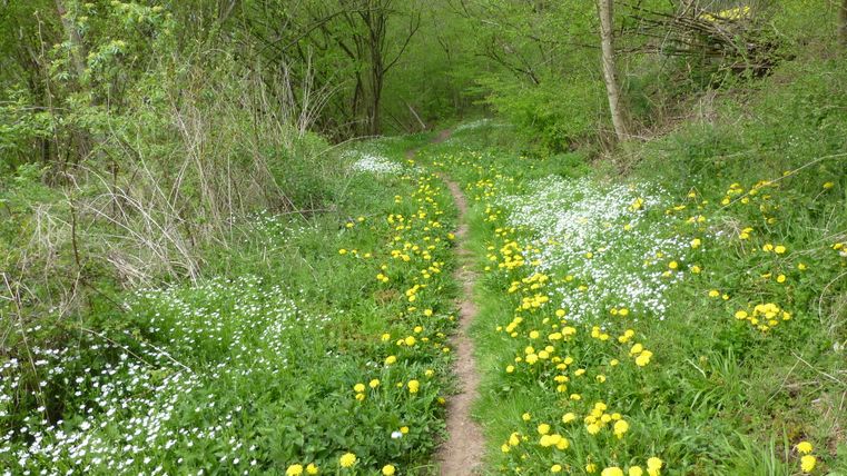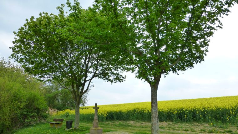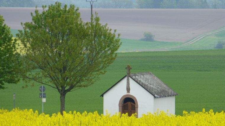 Die Weite des Bitburger Landes bestimmt das Bild dieser Etappe, die auch einiges an Abwechslung zu bieten hat. Anfangs erhalten wir schöne Blicke, wenn wir parallel zur Kyll aufwärts wandern, dann führt ein romantischer Waldpfad durch das kleine Naturschutzgebiet Wingertsberg und schließlich ins Freie. Durch offene Landschaft geht es nun auf das östlich gelegene Gondorf zu, doch vor diesem Ort biegen wir ab nach Dudeldorf, das einen eindrucksvollen historischen Ortskern besitzt und auch Einkehrmöglichkeiten bietet - ideal, denn hier haben wir ungefähr die halbe Strecke geschafft.