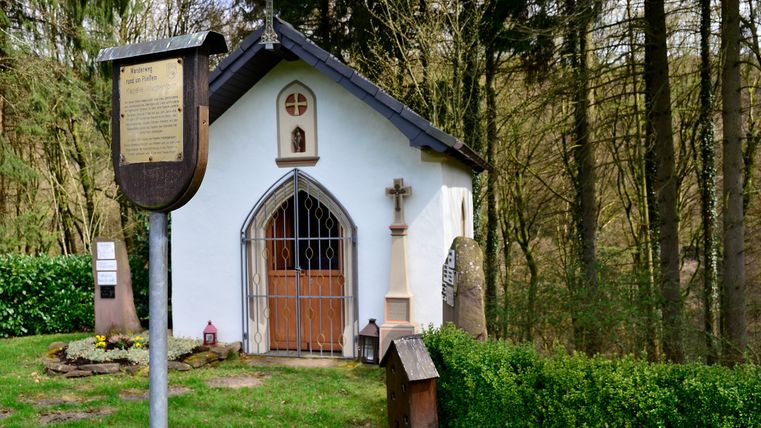 An der Gemeindehalle Malberg befinden sich Parkplätze, perfekt für eine Kurzwanderung zur Kapelle Wachenforth. Der Weg führt durch den "Mühlenwald", vorbei am beruhigenden plätschern der Kyll, bis zur Kapelle Wachenforth bei Fließem.