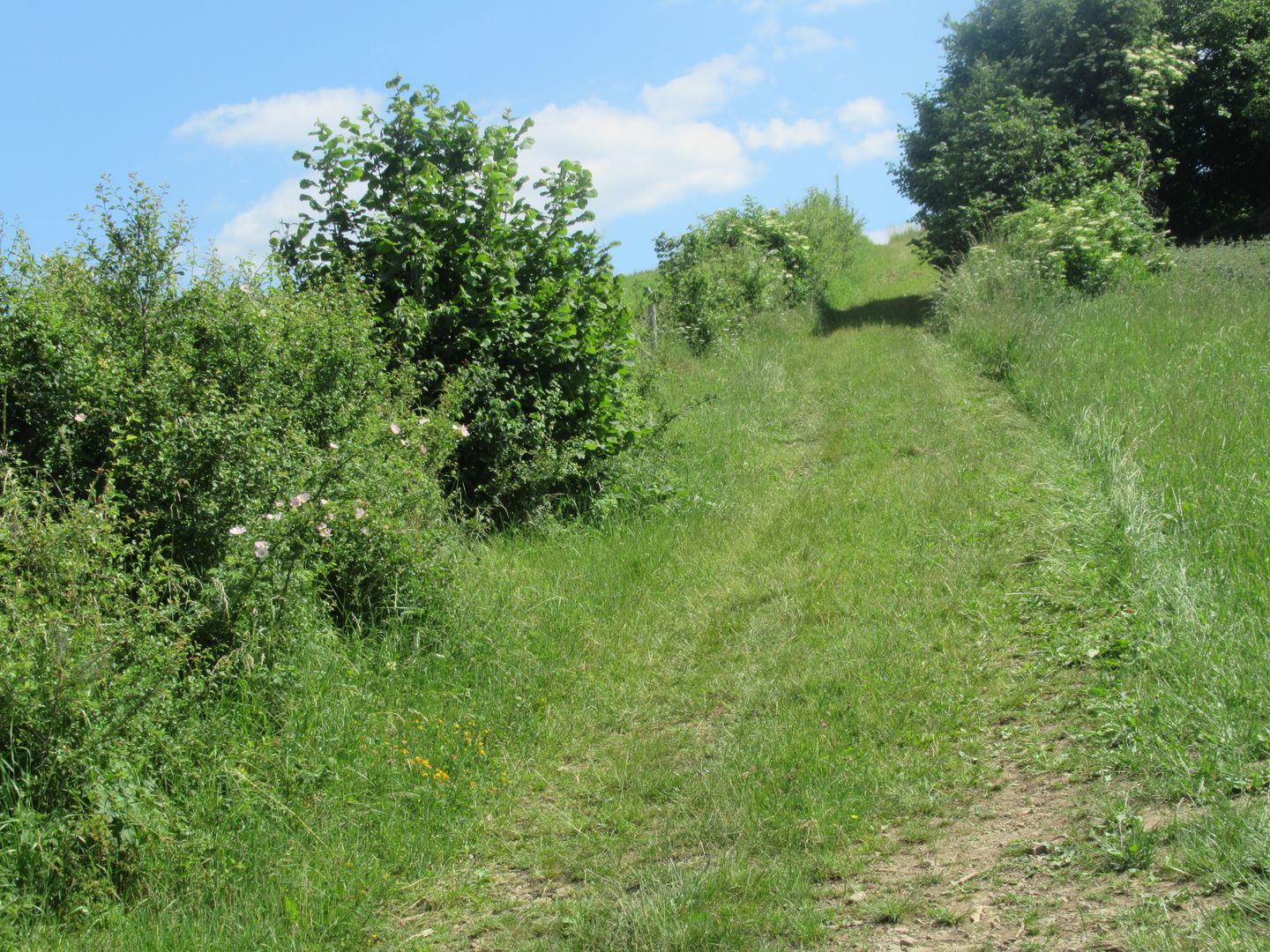 Der blaue Hexenweg, der nun mal rechts und mal links von einer Schutzhecke begrenzt ist, führt jetzt bis zum Drehfunkfeuer der Flugsicherung.