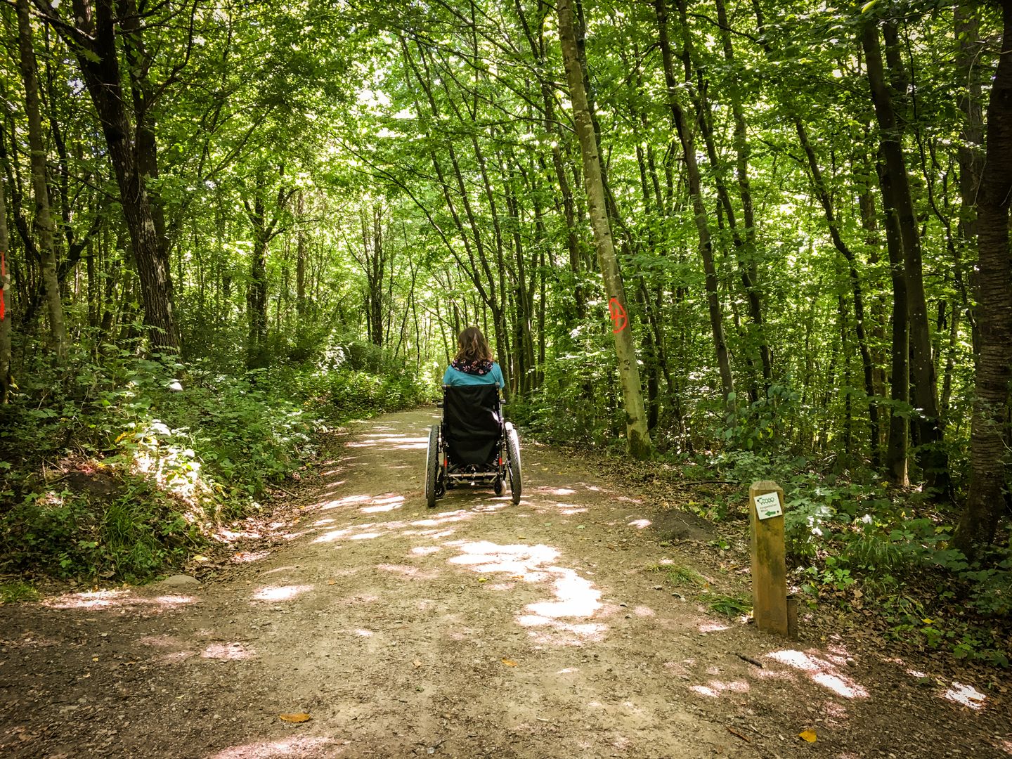 Barrierearmer Rundweg durch den Stadtwald "Königswäldchen", der mit Rollstuhlzuggerät und Kinderwagen möglich ist.