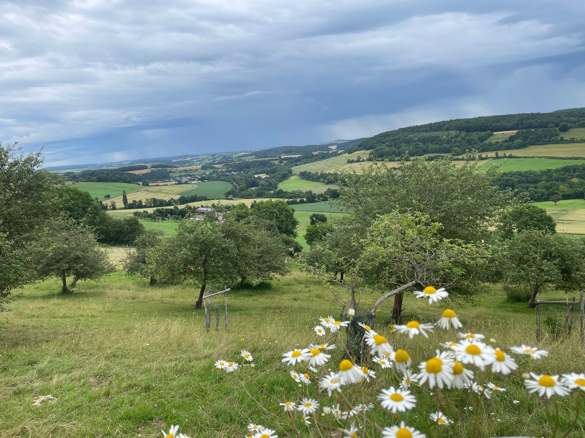 Über die Prümbrücke in Richtung Neuerburg gehen Sie nach wenigen Metern rechts in die „Mittelgasse“. Ein Nischenkreuz aus der Zeit um 1600 grüßt auf der linken Seite (s.Heft „Oberweiser Kreuze-Weg 5), und am Ende der Gasse steht etwas versteckt rechts ein Gedenkkreuz. Sie gehen nach links in die „Bachstraße“ und weiter den „Brotberg“ hinauf in Richtung Feilsdorf. Bis zum „Stromhäuschen“ steigt die Straße steil an. Dort biegen Sie nach links in die Gemeindestraße „In den Scharren“ ab. Hinter den letzten Häusern beginnt der schöne Wiesenweg „In der Kranzkaul“. Rechter Hand im Hang ist ein großer Wasserspeicher, der die Gemeinde mit frischem Eifelwasser versorgt. In halber Höhe gehen Sie parallel zum Nierbach-Tal, sehen unter sich die „Vollmühle“ und den „Ludeshof“, bis Sie dann das Örtchen Mülbach vor sich liegen sehen. Sie stoßen hier auf den Regionalwanderweg, der von links aus Mülbach herauf kommt. Auf der geteerten Straße gehen Sie zweimal rechts, der Aussiedlerhof „Deltenhof“ grüßt auf der linken Seite. Sie gehen wieder in Richtung Oberweis. Von der Spitze des Flurstückes „Auf `m Hütmäuerchen“ können Sie einen schönen Blick auf das gesamte Prümtal genießen. Der Weg stößt auf die Kreisstraße K9 von Oberweis nach Feilsdorf. Nach rechts bergab gelangen Sie direkt wieder in den Ort. Die Wege Nr.6 und der Regionalwanderweg führen Sie nach links und biegen nach ca. 200m rechts ab. Am Waldanfang geht es wieder rechts abwärts und aus dem Wald heraus auf einem Wiesenpfad oberhalb des „Buchenhof“ bis zum ersten Weg nach links abwärts zum geteerten Wirtschaftsweg. Sie kreuzen hier den Weg Nr.5 gehen durch Wiesen und Felder bis auf den „Brechter Weg“ und nach rechts wieder zurück in den Ort. Die Sehenswürdigkeiten, wie Wegekreuze, Pfarrkirche und Kapellchen kennen Sie bereits vom Wanderweg Nr.5.
