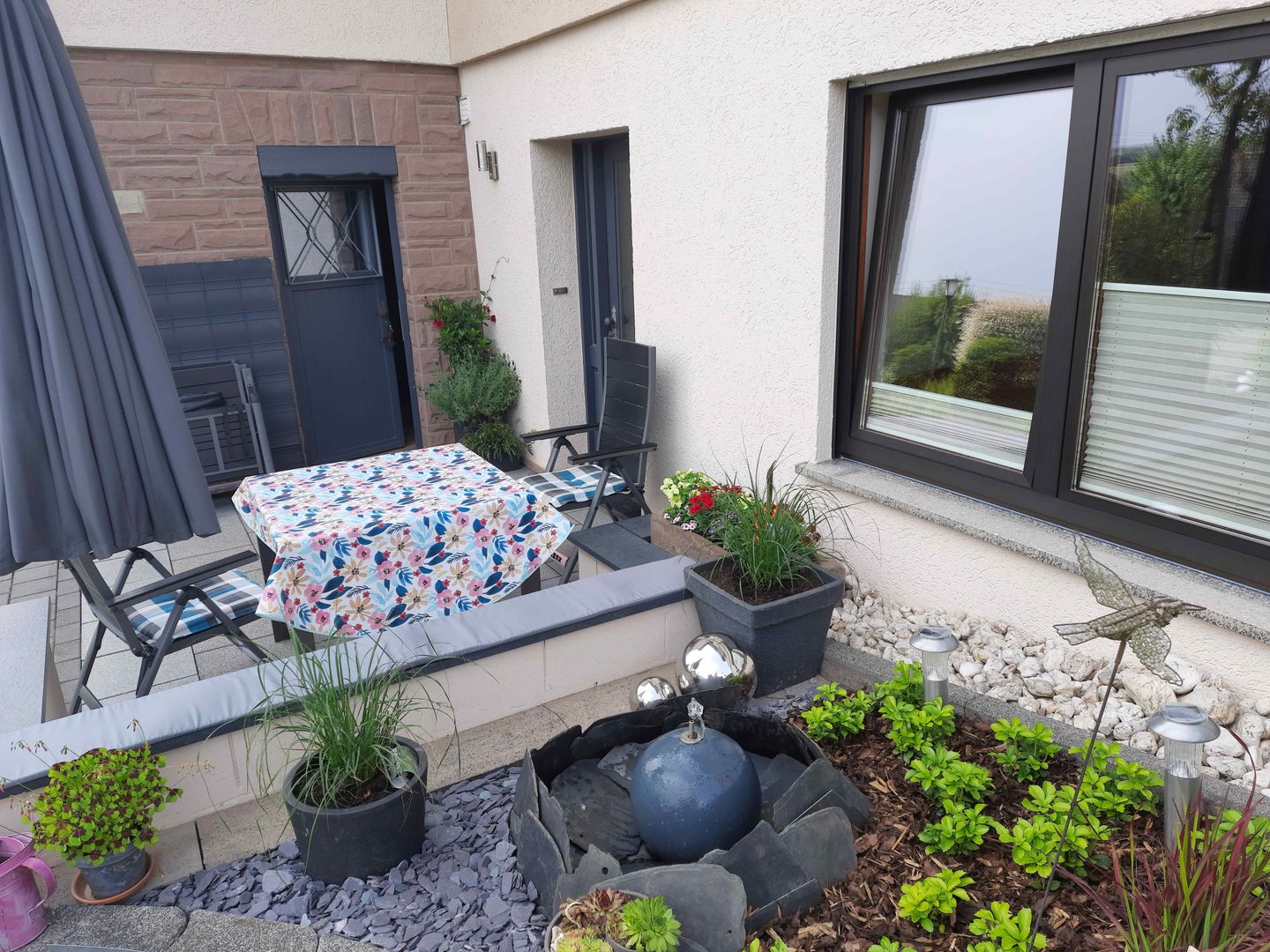 Eine schöne große Terrasse und großer Garten direkt vor der Wohnungstür lädt zum Verweilen ein.