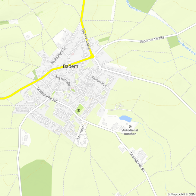 Badem liegt nahe der Autobahn, es gibt einen Imbiss und einen Döner im Ort. Auch ein Supermarkt und ein Café sind in Badem.