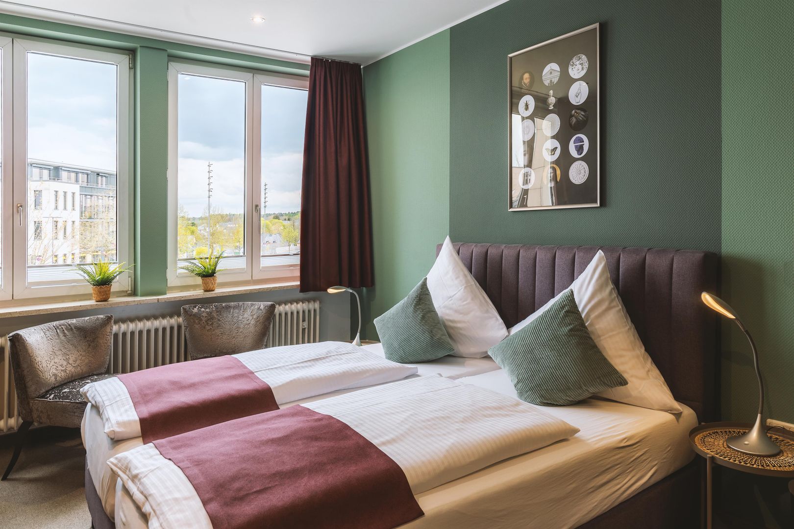 Wählen Sie zwischen unserem Hauptgebäude inmitten der Bitburger Fußgängerzone, der Dependance in einer ruhigen Seitenstraße, dem City-Hotel gegenüber der Stadthalle oder einer modernen Ferienwohnung, ruhig gelegen und mit eigenem Parkplatz direkt am Haus.